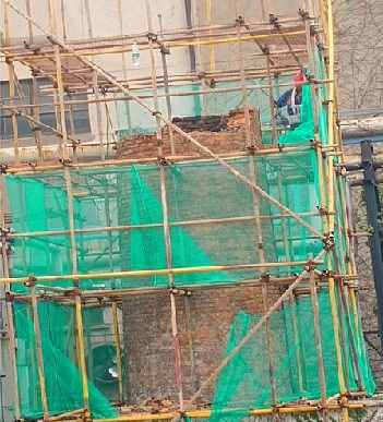 5、二层以上的建筑物须支搭安全网,在烟囱拆除施工中保证安全网完整有效,受力均匀;加强对建筑物楼层临边、框架结构梁边、施工作业层柱子边等的防护管理,搭设防护栏。