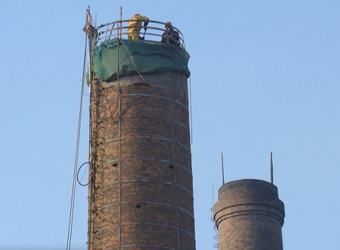 2、烟囱放到前,工作人员在发现裂缝时,有必要站烟囱放到方向的两周围面,保证安全。