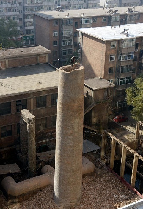 负责拆除大烟囱的施工方负责人刘慧东告诉记者:“这个烟囱已经存在了60年,总高度是23米,到今天为止已经拆了12米,还剩10多米,等拆到七八米的时候就能上机械进行拆除了。”刘慧东说:“由于这个烟囱离居民楼太近,不能采用爆破的手段,不安全,所以只能采取先人工后机械的方式进行拆除。因为存在困难,工人需要掌握一定的工程技术,所以请有资质的专业公司来拆,拆除需要大约5天的时间,清理也需要大约5天的时间,总共差不多有10天就拆除完毕。”
