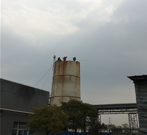烟囱人工拆除施工师傅们艺高人胆大:有两人站在烟囱上干什么呢?周围的居民,稍微靠近一看,原来是几十年的老烟囱拆除了,只见两个师傅拿着两个电动工具,烟囱的砌体一块块的掉下来,而师傅们好像就旋在空中,其实这就是我们公司施工的特色,施工人员采用双重保险,将安全带紧固在直爬杆上,确保施工人员方便快捷施工。拆除工具采用千斤顶开口断拉式并结合空压机气镐、铁锤敲击施工,将拆除的废渣物向下抛掷,施工方拆除的废渣,必须及时清运。施工中依次分段沿爬梯向下移动爬杆完成整个烟囱的拆除。