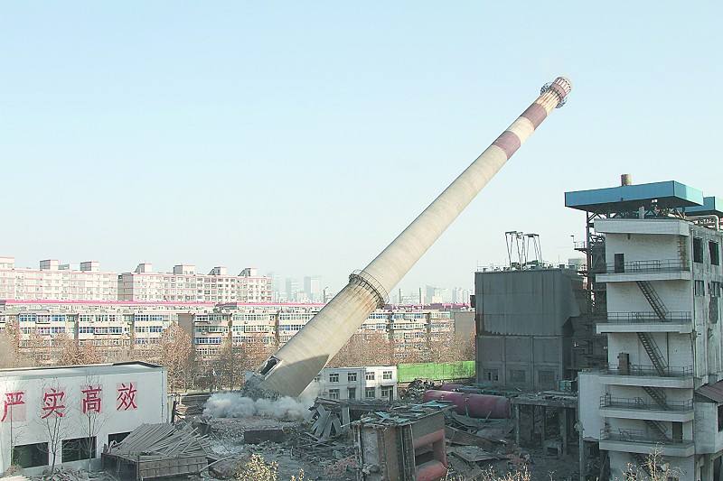 昨日上午10时30分,随着控制按钮的按动,大烟囱顷刻间灰飞烟灭。