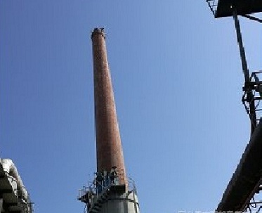 然后爬到烟囱顶部,做好烟囱拆除的安全措施和施工前的准备工作。在爬梯过程中,应对原烟囱爬梯进行必要的安全检查,防止爬梯腐蚀、脱焊等不安全因素。如发现应及时处理,不得遗留安全隐患。在砖烟囱拆除过程中,烟囱应自上而下拆除。首先,烟囱墙砖洞口采用专业的烟囱拆除工具开启。