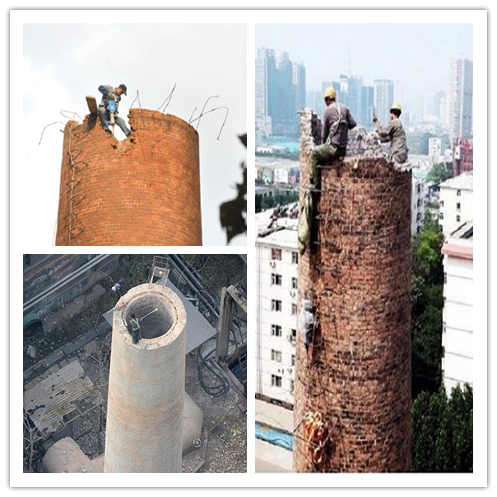 (二)高空维修工程:烟囱改造,烟囱清灰,烟囱检查,烟囱探伤,烟囱裂缝修补,烟囱加箍加固,烟囱碳纤维布加固,烟囱拆除加高,烟囱校正,烟囱更换内衬,烟囱顶口修补,检修或更换避雷设施,烟囱粉刷,轮窑维修、隧道窑维修、烟囱抽烟力不够等。